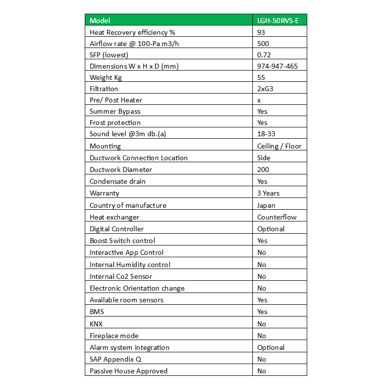 Key features- Mitsubishi Lossnay LGH-50 RVS-E
