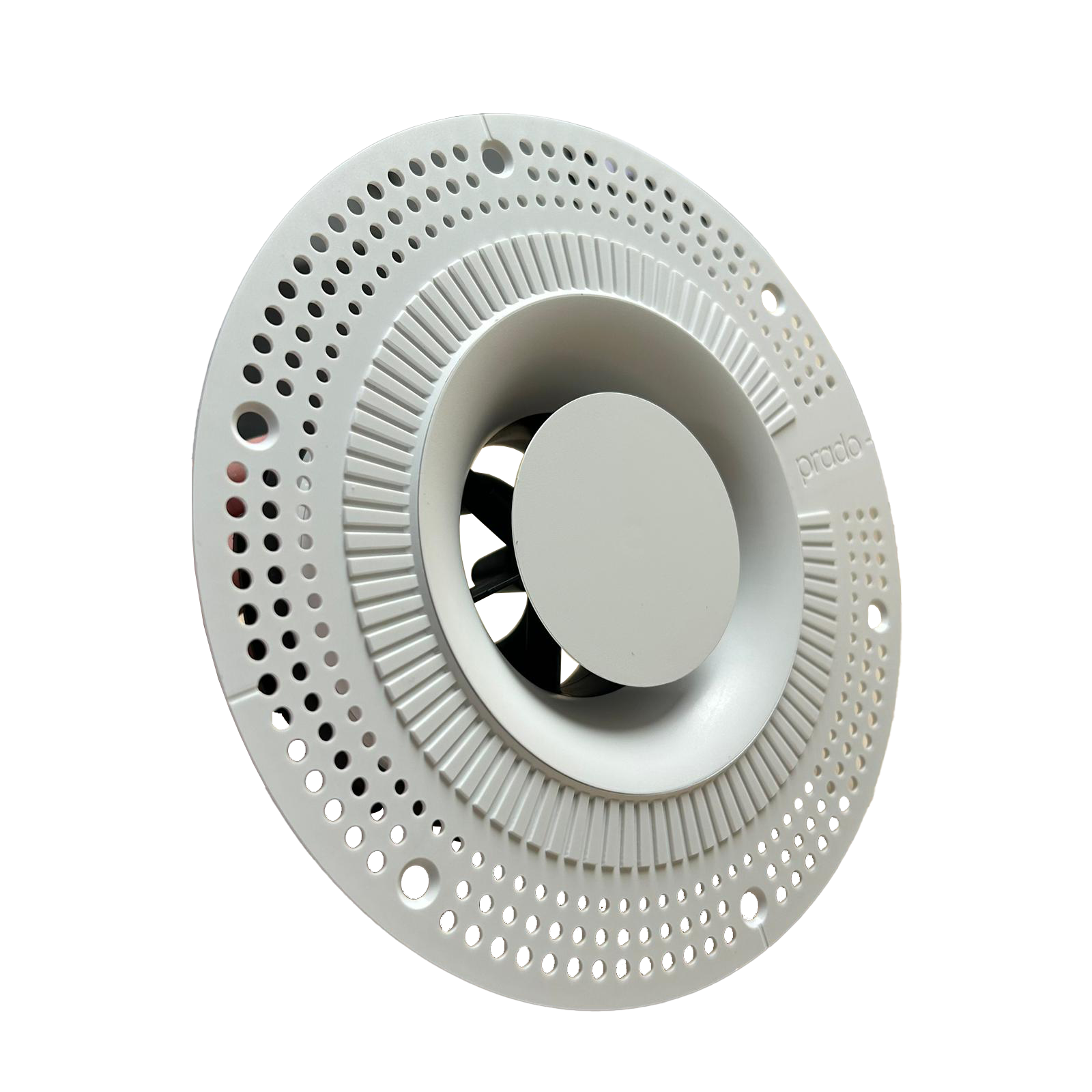 Using the Coanda effect, the air is diffused in a horizontal motion, preventing unwanted draughts and enhancing comfort in any indoor space. Extremely easy to install, this air valve comes complete with a plaster ring, reducing installation time compared to traditional gypsum-type trimless valves. It can also be retrofitted when replastering a ceiling.